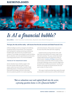 This edition of Monthly Market Commentary examines whether the rapid rise of Artificial Intelligence is fuelling a financial bubble. It explores the hype, the risks and the reality, with lessons drawn from the dot-com boom and the Global Financial Crisis to help investors assess today’s AI-led market dynamics.
